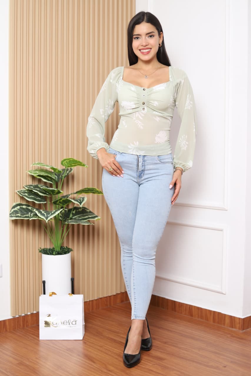 Blusa Isabel, elaborada en Tela Gasa Hindú Estampada