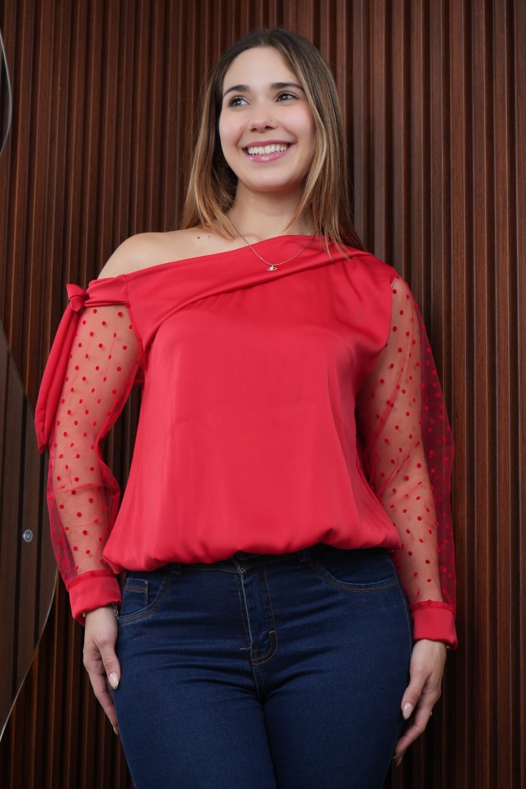 Blusa Aimé, elaborada en Tela Gasa Hindú Color Entero y Tull